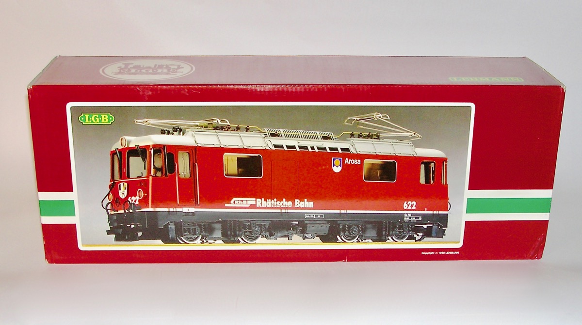 LGB # 2043 RhB Arosa 622 Ge 4/4 II Locomotive G Scale . Length 24 in. This is new in the box with all materials. Just a beautiful G scale Train Engine.