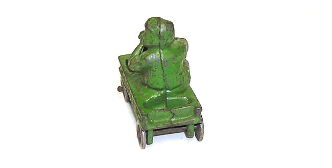 Rare Hubley "Coaster" Cast Iron Boy in Wagon ToyHere is a neat early toy - rarely seen - from Hubley. This is "Coaster" Boy Cast in Wagon cast iron toy. Stamped wheels and 'Hubley" clearly marked underneath. The toy measures 3-3/4" long. It is in great condition for this toy. No breaks, cracks or repairs of any kind. Don't miss this one Price: $350 SORRY! SOLD!