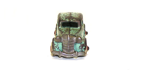 Rare Arcade 1935 Ford Sedan w/ Nickeled Grille -GreenHere is a hard to find Arcade 1935 Ford Sedan with nickeled grille and white rubber tires. This is the green color. Arcade only made two versions of this piece - this is the sedan, and I have the stake truck offered separately. This piece measures 4-3/4" long. It is in very nice overall condition - as seen in the pictures. No breaks, cracks or repairs. Don't miss this nice antique toy car. Price: $249 SORRY! SOLD!