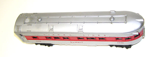 Lionel 2442, 2444, 2446 Red Stripe Passenger Cars + BOXESHere is a very nice set of Lionel postwar "O" gauge "Red Stripe" Illuminated Passenger Cars plus the BOXES. We are offering the No. 2442 "Clifton" Vista Dome, the No. 2444 "Newark" Pullman, and the No. 2446 "Summit". These are in excellent condition. The sides and stripes are very clean, the tops have some marks and scratches. Particularly one mark on the top of the Observation (see picture) where the paint is thin. The Boxes are all in very good condition. Don't miss. Price: $279 SORRY! SOLD!
