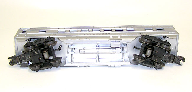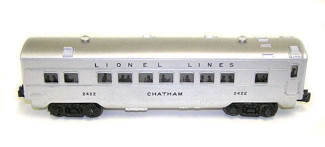 High Grade Union Pacific Diesel Set 1464W w/ 2033 + Passenger CarsHere is an investment quality Lionel postwar set - the No. 1464W Union Pacific Passenger Set that Lionel made circa 1952/53. This features the No. 2033 silver top twin AA diesel engines. Included are the silver top lighted passenger cars - No. 2421 Maplewood - the No. 2422 Chatham, and the No. 2423 Hillside Observation car. This set features Magna-traction and has the silhouetted passengers in the cars. Condition is outstanding as you can see in the pictures. It is very hard to find this set with nice bright silver as new, and this set has it. Only a couple of things to point out; the back top of the non-powered unit has a small nick on the back edge and a couple of rub spots, on the roof. Also, its decal is missing a little section as seen in the pictures. The passenger cars are really nice. A couple of small scratches in a few places, but really nice bright silver finish. These look like they have been on the track, but most would call these trains unrun. Engine box was opened from the bottom. One passenger car box has tape along the edge, and I see two flaps that have been reinforced with tape. Original paper for the cars. Please ask any questions. A great set - needing a Set Box to complete. Enjoy all the pictures. Price: $1099 SORRY! SOLD!