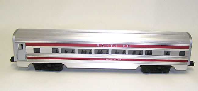 Lionel Santa Fe 2561 2562 2563 2563 Red StripesHere is a high grade set of the red stripe Santa Fe Passenger Cars that Lionel made from 1959-61 as part of their Red Stripe SF Series. We have the No. 2561 Santa Fe Vista Valley Observation Car, the No. 2562 Santa Fe Regal Pass Vista Domes and (2) No. 2563 Santa Fe Indian Falls Pullmans. These are in like new condition - as seen in the pictures. Wheels show a tiny bit of rail time. However, I would call these unrun. Can't find anything to point out, except the exceptional quality of these Lionel Passenger Cars. You won't be disappointed in these. Don't miss. Price: $995 SORRY! SOLD!