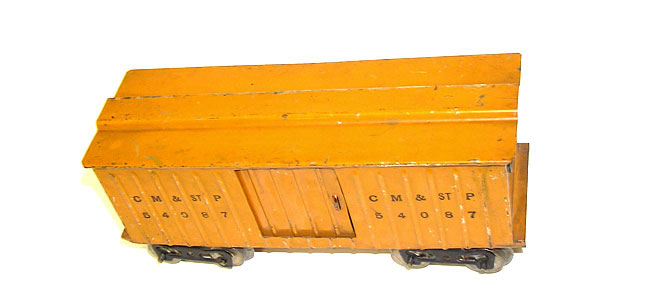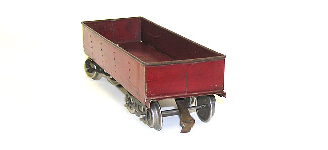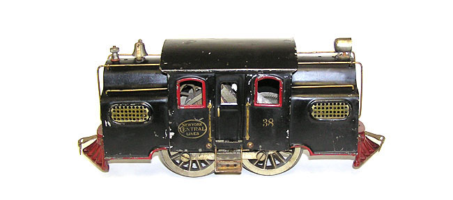 Lionel Std Gauge # 38 Electric Loco w/ 114 112 117 FrgtHere is a very nice set of early prewar Lionel Standard Gauge Electric Trains. Includes - the black No. 38 New York Central 0-4-0 Locomotive made in 1913, with the No. 114 orange Boxcar with embossed bottom and one crinkle hook coupler, the No. 112 with what looks like a cherry red body, embossed bottom with type II data lines and one crinkle hook coupler and one replacement - and a No. 117 dark brown Caboose with no embossed floor and hook couplers with ears. The engine measures 11-1/8", the cars are approx. 9". The engine is all original with some scratches in the paint as seen in the pictures. Nice original stamping. Tested and it runs. The 114 Boxcar has two brake wheels on the ends, and some overall wear, but is in very good condition. The Gondola shows some sratches and a repalced coupler. The Caboose shows wear on the roof as pictured. A great grouping not to be missed. If there is no interest in this as a set, I will break up the group and sell them separately. Price: $399 SORRY! SOLD!