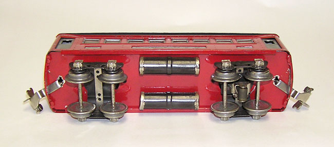 Set of RARE Lionel Passenger Cars Red/Silver # 610, 612Here are some early cars you won't see very often. Offering a nice set of Lionel prewar "O" gauge passenger cars. The red with silver top No. 610 Pullman, No. 610 Pullman, and the No. 612 Observation with the san serif bold letters on the name plates. These are in beautiful condition - as seen in the pictures. Very few scratches, nice silver roofs. One pullman is missing a coupler. Don't miss these for your sets. Price: $499 SORRY! SOLD!