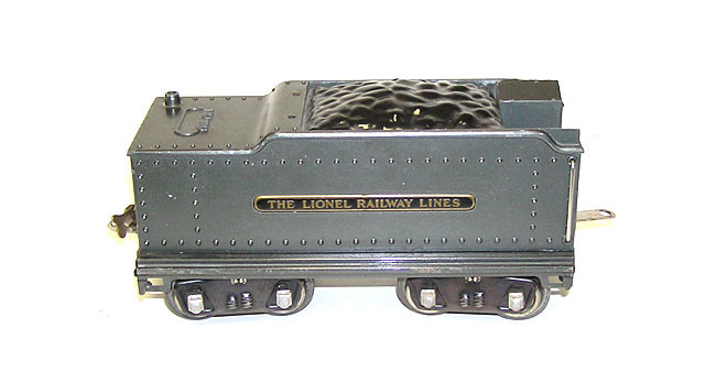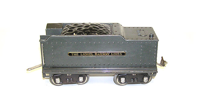 Lionel # 385E Standard Gauge Loco w/ 385W Tender NRHere is a great looking engine and tender from the late 1930s. This is a Lionel No. 385E Standard Gauge gun-metal gray 2-4-2 Steam Locomotive with its matching No. 385W Tender. The loco is a large 15" long. Tender is 8" not including its couplers. The loco and tender look to be in excellent shape - as evidenced by the photos. To be honest, I do not know the history of this pair, and do not know what if anything has been done to it. I believe the steam chest on the engine is all original. Possible repaint to the frame (?) Steam chest shows no cracks. The latch (which I know is a replacement) on the engine boiler front works fine, and opens the front, which is not frozen shut. The engine runs fine. The whistle on the tender is missing, and I have a separate 385W auction (CLICK HERE TO VIEW) going off tonight which has that whistle part. I believe the pictures tell the story - and please ask any questions. Don't miss your chance to own these nice trains - selling with NO RESERVE. Buyer pays shipping. Please check out my other items currently listed, and save on shipping. NO RESERVE. Price: $489 SORRY! SOLD!