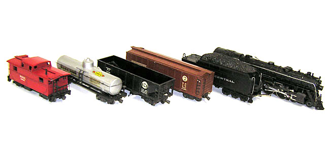 Lionel Prewar "OO" Scale Set w/001 Hudson 001T, 0014 ++Tonight I'm offering a nice set of "OO" scale Lionel trains from the 1938-42 period. Set No. OO8O. This includes....a very nice Lionel "OO" gauge 4-6-4, superdetailed 3-rail Hudson No. 001 Steam Locomotive with its No. 001T New York Central tender. This set includes (4) freights - the No. 0014 PENNSYLVANIA Box Car - the No. 0015 SUNOCO Tank Car - the No. 0016 SP Hopper Car - the the No. 0017 NYC Caboose. A great set for your OO gauge layouts. The engine is in excellent condition - as seen in the pictures. I have not tested the engine, but from the wheels it looks like it has had very little run time. The front cow catcher has one step that is bent. The 001T tender is also extremely nice. New York Central stamp very strong. CLEAN. The freights are very good to excellent as pictured. The tank car's decals show some wear. The Hopper has some residue in its bed from a previous "load"! Selling set together, so don't miss. Please ask any questions. Buyer pays shipping. Please check out my other trains currently on Ebay, and save on shipping. Thanks. Buyer pays shipping. Please check out my other items currently listed, and save on shipping. NO RESERVE. NOTE: Preferred payment is check or money order, and will be accepted. Thanks for understanding. Price: $625 SORRY! SOLD!