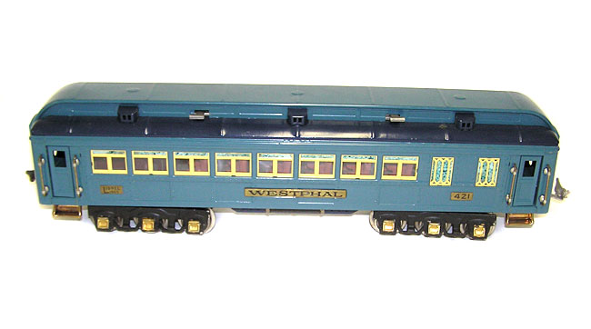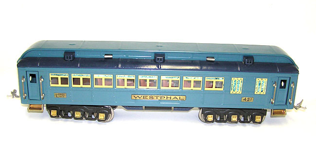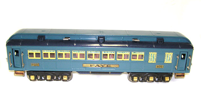 Lionel Std. Gauge Blue Comet Passenger Cars 420 421 422Here is a set of (3) Lionel standard gauge passenger cars - No. 420 Pullman "Faye", the No. 421 Pullman "Westphal", and the No. 422 Observation "Tempel". These make up the Blue Comet Passenger Car Series. These have been very nicely restored. Overall these are in excellent or better condition. I don't see any problems. The interiors are really nice. Would be a great addition to your sets. If there is no interest in these as a set, I will break them up and sell them separately, so please bid early. Buyer pays shipping. Please check out my other items currently listed, and save on shipping. NO RESERVE. Price: $749 SORRY! SOLD!