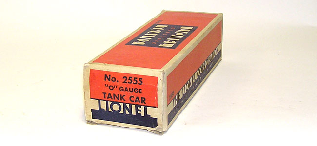 Lionel No. 2555 Sunoco Single-Dome Tank Car + BOX (#2)Here is another extremely nice original Lionel No. 2555 Sunoco Single-Dome Metal Tank Car plus original BOX. Without "Gas and Oils" in Sunoco decal. 1948 Model. Condition is pristine - as seen in the pictures. Cataloged from 1945 to 1948. This is exceceptionally clean, close to 98%. Box is brick with flaps reinforced. Don't miss this one for your sets! I took clear pictures for you to see all - and please ask any questions. Price: $149 SORRY! SOLD!