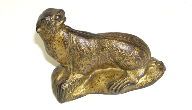Here is the "Seal on Rock" still bank, made by Arcade in the 1910-13 period. This bank measures 3-1/2" x 4-1/4". Made from cast iron with gold paint. The bank is in very good condition with no breaks, cracks or repairs. Original screw. Great for your still bank collection.