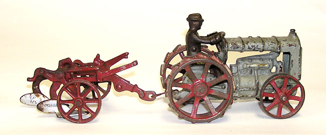 Arcade Fordson Tractor w/ Oliver Plow - Nice!Here is the large size Arcade Foadson Tractor with driver pulling an Arcade Oliver Plow. A great combination. Tractor measures 6" long. In very good condition, as seen in the pictures. No breaks or cracks. Price: $235 SORRY! SOLD!