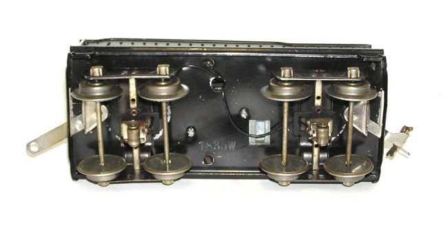 Lionel # 1835E Standard Gauge Loco w/ 1835W Tender OBHere is a nice looking engine and tender from the late 1930s. This is the Lionel No. 1835E Standard Gauge black 2-4-2 Steam Locomotive with its matching No. 1835W Tender. The 1835E chassis and motor is identical to the No. 385E with different paint and trim scheme. The loco is a large 15" long. Tender is 8" not including its couplers. The loco and tender are in very good to excellent shape - as evidenced by the photos. I have not seen many original engines better. The latch and the engine boiler front opens fine. Both have been tested and the loco runs, and the whistle works. The engine has a few scratches on the cab roof as pictured. The tender has a few scratches on the frame, but it is NOT warped and is original to the set. The boxes are nice with the engine box having its original insert. I believe the pictures tell the story - and please ask any questions. Don't miss your chance to own these nice train engine, and please take a look at the wonderful passenger cars that would go with this engine (see the last picture for the set - this is for the Engine and Tender only). Price: $650 SORRY! SOLD!