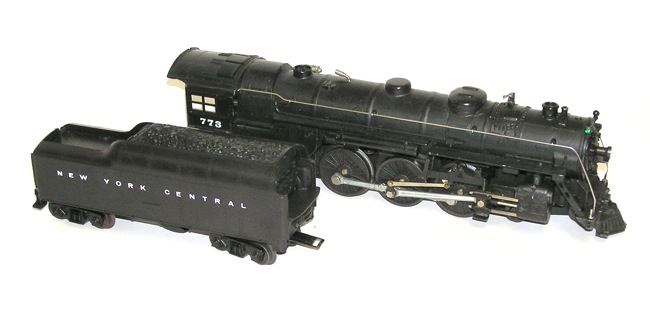 Lionel # 773 Postwar O Gauge Hudson Steam Loco 773W LNHere is a very nice Lionel No. 773 Hudson Steam Locomotive with it matching No. 773W whistle tender. This is a 60's version of this train. Size is 14-1/4" long. Condition of the trains is excellent plus as seen in the pictures. The Tender is lightly run, and the engine looks like it has been tested on track, but little run time. Tested and both work fine. Tender has a small spot of oxidation under one truck. Sorry, no boxes. A beautiful set - don't miss! Price: $1099 SORRY! SOLD!