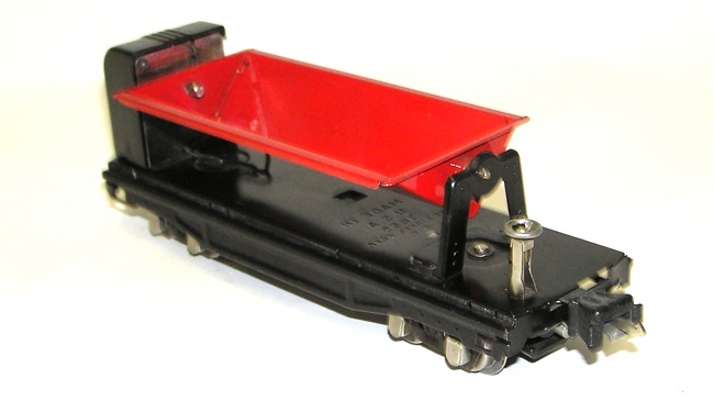 Lionel Large Series No. 3859 Dump Car - Exc!Here is one you won't see very often - a very nice prewar Lionel "O" Gauge No. 3859 large series Dump Car. Made between 1938-42. This car measures 8-3/4" long. Box couplers. The car is in excellent condition - as seen in the pictures. Has not been tested. Also offering separately additional freight cars in this series (see bottom picture - this is for one item only) Don't miss. Thanks. Also offering separately additional freight cars in this series (see bottom picture - this is for one item only) Don't miss. Thanks. Price: $69 SORRY! SOLD!