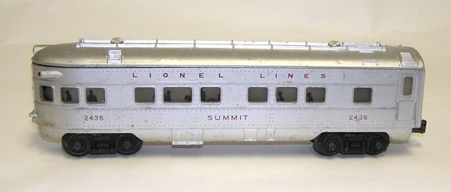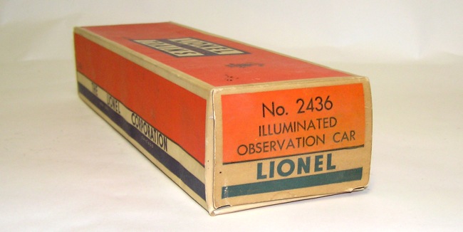 Tough Lionel Set No. 1552 w/ 629 Diesel 2432 2434 2436Here is a nice set of Lionel "O27" gauge postwar trains from 1956 - featuring the Burlington No. 629 Center Cab Diesel Engine with the the following red-lettered illuminated passenger cars - No. 2432 Clifton Vista Dome, the No. 2434 Newark Pullman, and the No. 2436 Summit Observation Car. Also has the three BOXES for the Passenger Cars. No engine box. Overall, a nice looking set. The engine shows some wear to the silver throughout. Has the proverbial screw crack on the front (see pics). Ran in forward and reverse. The cars vary in condition. The 2434 Newark is in very good condition. Some marks on the roof. Trucks clean. The No. 2432 Clifton is in excellent plus condition. It only has a small mark on the roof. Otherwise, nice and shinny silver like new. The Observation is only in good condition. The roof lifts up in the back, as the bracket inside may be loose. Some minor oxidation underneath, and some wear on the roof. The boxes are all in very nice condition with all flaps present, including all coupler flaps. A hard set to find - don't miss. Please ask any questions. Thanks. Price: $395 SORRY! SOLD!