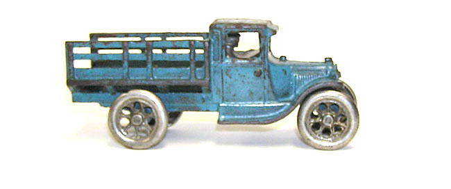 Arcade 1929 Cast No. 206X Ford Stake TruckHere is a very nice 1929 Arcade Ford Stake Truck with cast iron wheels. It measures 7-1/2" long. Nice original paint and Arcade decal. Not seen very often. No breaks or cracks. Don't miss! Price: $280 SORRY! SOLD!