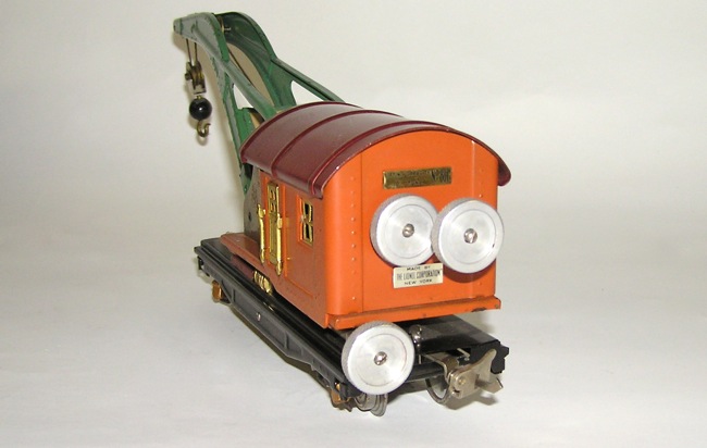 Lionel Prewar No. 810 Crane Car Early Colors + BOX Wonderful Car!Here is another beautiful Lionel "O" gauge prewar No. 810 Crane Car with copper journals and latch couplers plus its original BOX with insert. This has the early prewar colors. Condition is excellent plus - as seen in the pictures. Only minor wear. Working condition. Box is the best part of this one. Complete with great interior lining. A great piece! Rare to find in this condition. Don't miss. Price: $465 SORRY! SOLD!