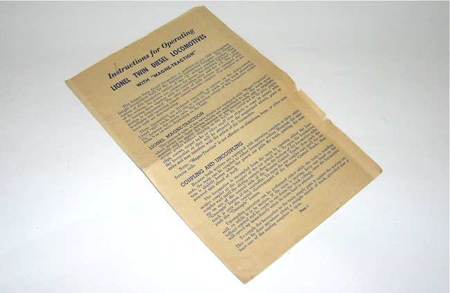 LN/OB Lionel No. 2031 Rock Island AA Alco Diesel SetHere a high grade pair of No. 2031 Rock Island Alco AA Units. These were cataloged from1952-54. Just beautiful - as seen in the pictures. Still has that new patina look. No breaks or cracks. Decals are perfect. Box has its 3 inserts. You won't find these in this condition very often. Investment grade trains. Price: $825 SORRY! SOLD!
