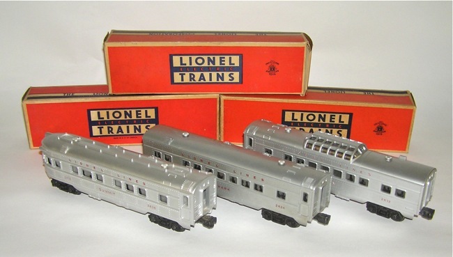 Lionel Boxed # 1534W Passenger Set w/ 2328 2432 34 36 +This is the very nice Lionel No. 1534W "O27" gauge Passenger Set that Lionel made in 1955. This fairly hard to find set includes the No. 2328 Burlington GP Diesel with the scarce over-stamped No. 2338 orange Box, one of only a few that I have ever seen. The Engine pulls the illuminated red-lettered Passenger Cars - the No. 2432 Clifton Vista Dome, the No. 2434 Newark Pullman and the No. 2436 Summit Observation Car. The set includes all the individual Boxes, the No. 1033 Transformer and BOX. It also includes the Set Box. All that is pictured below. Overall this set is in excellent to like new condition. Some notes: The 2328 engine runs like a champ. It has some wear to the roof domes. But it is bright and shinny, few small rub marks. A nice example of this engine. The rare 2328 box has a crease on one side, but all flaps. Sturdy for this box. The Passenger Cars are all in very nice condition. A few marks on the roofs and sides. But soild condition. All light up. Wheels show little run time. The (3) Passenger Car BOXES are in great shape with all flaps. A nice matched set. The set box has some staining, but is all there in good condition. Overall, a very nice set - not to be missed. I took a lot of photographs for you to see all, and please ask any questions. Buy with confidence. Thanks. Price: $1275 SORRY! SOLD!