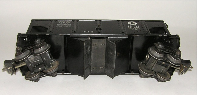Lionel Prewar 2816 Black w/White Lettering Coal Car BOXHere is a wonderful piece - the No. 2816 Black Coal Car with Rubber Stamping and blackened journals. It also has its original BOX. Simulated automatic knuckle box couplers. In excellent plus to like new condition - as seen in the photos. Trucks and couplers clean. A nice square box with all flaps, however, both coupler flaps are torn. Pictures tell the story on this great car - and please ask any questions. Price: $399 SORRY! SOLD!