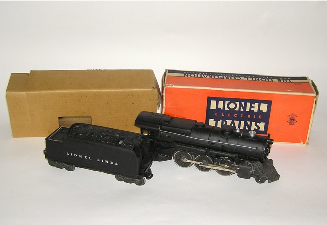 High Grade 1947 Lionel # 2025 Steam Locomotive w/ 2466WX + BOXHere is an extremely nice Lionel "O" gauge 2-6-4 Steam Locomotive - No. 2025. This is the 1947 version with its aluminum stack and smooth front pilot. Comes with its matching 2466WX Tender. Also, included is a Engine box with sturdy liner. The engine measures 10-1/2" long not including the couplers. Condition is almost like new with little wear as seen in the pictures. Great looking patina. Original paint. Trucks are clean. Runs in forward and reverse. Smoke unit works. The Tender is equally as nice. Tested and the whistle works fine. Box is missing some interior flaps and has some tears. All should be clear from the many pictures below. A real nice loco for your collections. Don't miss. Thanks. (Also, offering a great set of 1947 Passenger Cars that would go with this engine - see bottom picture for the group - this listing is for the Engine and Tender only) Price: $225 SORRY! SOLD!