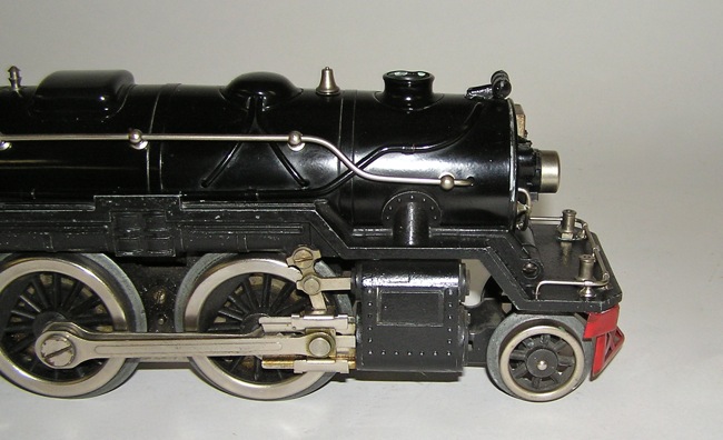 Lionel # 1835E Standard Gauge Loco w/ 1835W Tender +BOXESHere is a great looking engine and tender from the late 1930s. This is the Lionel No. 1835E Standard Gauge black 2-4-2 Steam Locomotive with its matching No. 1835W Tender. The 1835E chassis and motor is identical to the No. 385E with different paint and trim scheme. The loco is a large 15" long. Tender is 8" not including its couplers. The loco and tender are in excellent shape - as evidenced by the photos below. I believe that the frame on the engine has been replaced and/or repainted, which is typical with these engines. The engine boiler and boiler front are all original. The Tender is also very nice, with only very minor warping to the casting that is along the two back edges. Both have been tested and the loco runs, and the whistle on the tender also works. The boxes are very nice. The Engine box has its outer insert and an insert for the side. I believe the pictures tell the story - and please ask any questions. Don't miss your chance to own these nice train engine. Price: $850 SORRY! SOLD!