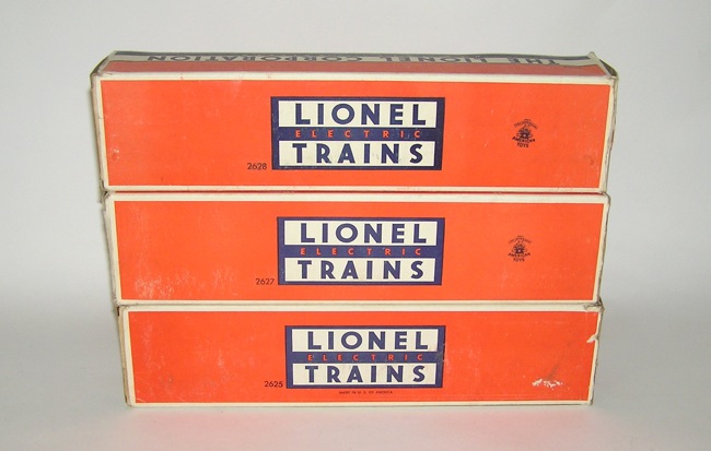 High Grade Boxed Set 1950 Madison Heavyweight Passenger Cars 2625 2627 2628Here is one of the most sought after Lionel postwar passenger car sets, circa. 1950. These are the last versions with Silhouettes in the Windows and came out of a #2148WS Hudson Passenger Set. The set includes a No. 2625 Irvington Pullman, a No. 2627 Madison Pullman, and the No. 2628 Manhattan Pullman. All come in their original boxes with Inserts. All that is pictured below. Enjoy all the pictures as I tried to show all. As you can see, this set is in outstanding original condition. Nice and bright with only a couple small marks. Bottoms clean. The boxes, which are very hard to find for these cars, are in excellent condition. Nice and bright with all flaps and inserts. The flaps on both the 2625 and one end of the 2628 have been repaired. A great set - not to be missed. Please ask any questions. Buy with confidence. Thanks. Price: $1725 SORRY! SOLD!