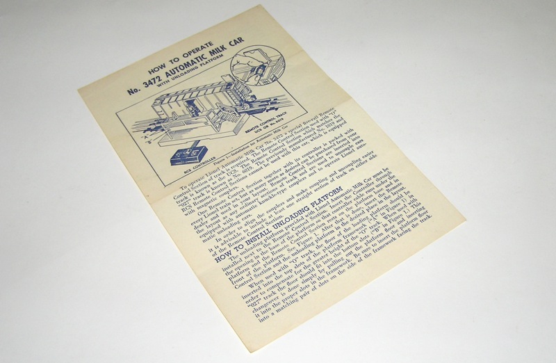 Nice Lionel No. 3472 Refrigerator Car, Platform + BoxHere is a Automated Refrigerator Milk Car No. 3472 plus its platform, (5) milk cans, its Instruction Sheet, and original Box and lining. This is the later version with the white doors.The car measures 8-1/4" not including its couplers. Excellent overall condition as seen in the pictures. Platform is very clean. Box is nice and bright with all flaps. A real nice set. Don't miss. Thanks. Price: $75 SORRY! SOLD!
