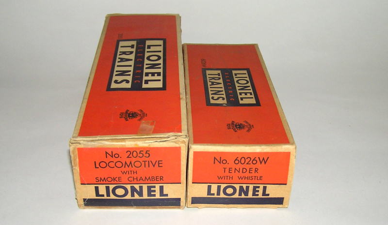 Lionel Postwar Set # 1503WS, 2055, 6026W, 6456, 6462, 6465 +Set BoxHere is an extremely nice set of Lionel postwar "O" Gauge trains. This is Lionel Set No. 1503WS. Set looks like it was used once, and has been in the attic ever since. The set includes - the No. 2055 4-6-4 "O" gauge Steam Engine with its 6026W Tender. Also, we also have four freights - the No. 6465 Sunoco tank car - the No. 6456 maroon Lehigh Valley Hopper - the No. 6462 green Gondola - and the No. 6257 red caboose. It also includes all the individual boxes, a 6019 Remote Control Track Set, some paperwork, inspection slips, and the original Set Box. Overall, this is a great looking set. Everything is in like new condition, except for some of the boxes which show a little wear. The engine and tender are beautiful - as seen in all the pictures below. Both steps on the engine in the front are perfect. Runs in forward and reverse, lights up and smokes. The whistle on the tender works fine. The freights are in similar like new condition. The Engine box has some tape repair and shows some wear. The rest have a few minor tears, and a couple repaired interior flaps - but overall really nice. The set box is nice and sturdy and in very nice shape. A real nice Lionel postwar set to put away - please ask any questions. Don't miss. Thanks. Price: $395 SORRY! SOLD!