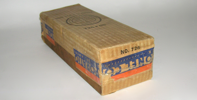 This is the top of the line in Lionel Berkshires. This is the harder-to-find 1946 Lionel No. 726 steam engine, and its No. 2426W Tender. Comes with its original Engine BOX and Insert. Lionel placed the most detail and best running gear on this engine. Instead of cotter pins as used in the following years, Lionel used stanchions to hold the handrails on the engine. Instead of having the motor drive the rear axle and using the main rod to drive the rest of the axles, Lionel placed the motor horizontally and used a drive shaft to drive the front and rear axles. Plus of course no e-unit slot through the top of the boiler, and a heat bulb upfront for smoke. Price: $450 SORRY! SOLD!