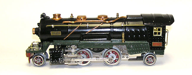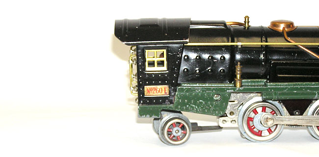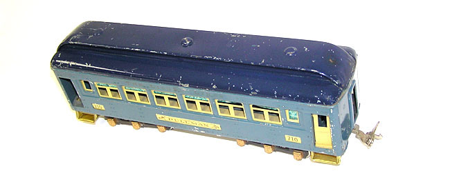 A Great Lionel "O" Gauge Set No. 241E w/ 260E, 710, 710, 712Here is one of my favorite prewar Lionel tinplate "O" gauge sets. This is Set No. 241E from the early-1930s. This is with the 6-Wheeled trucks on the tender and blue cars. It features a No. 260E Steam Engine, with a No. 260T Tender. It includes the blue with dark blue roof, No. 710, 710, 712 passenger cars. I think you can tell from the pictures that this set is in very nice overall condition. The engine runs in forward and reverse. Rare version with CHUGGER. Engine looks to have had the main wheels replaced. Original paint. Tender has a speck of green paint on the top. Missing two journals. The cars are in very good condition. All original, with some scratches, most on the roofs. One of the 710s has some green paint on the roof. Overall a very nice and desirable set. Don't miss this one! Price: $711 SORRY! SOLD!