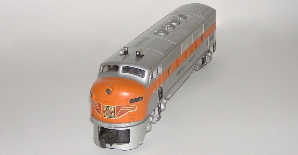 Nice! Lionel No. 2355 Western Pacific F-3 AA Diesels OBsHere is a very nice pair of original postwar Lionel No. 2355 Western Pacific F-3 AA Diesels. These are the AA Diesels with Dual Motors, Magnetraction and Horn that Lionel made circa 1953. Comes with both original Boxes, Inserts and paper. Overal I would say these are in excellent condition - as seen in the pictures. These look better than most, but do have some paint wear. Chassis and battery compartment nice and clean. Engine does light up and run in forward and reverse. The powered unit box has its insert and is in very good condition, with some staining and a missing flap on the insert - as pictured. The "T" box has been repaired on one side, is missing flaps and overall shows wear. The paper is torn and has tape on the back side. I believe the pictures below tell the story well, however, if you have any questions let me know. A nice set - don't miss. Price: $895 SORRY! SOLD!