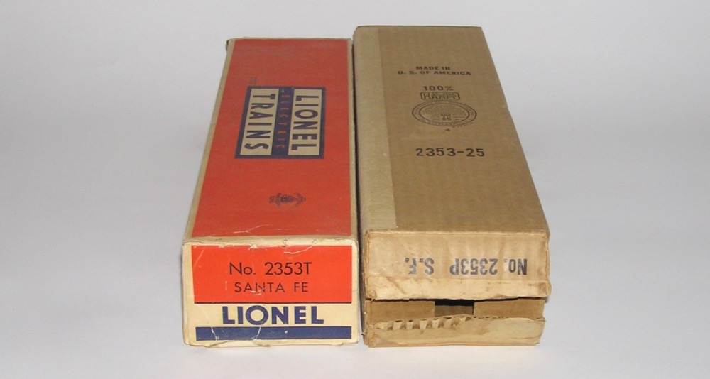 Nice Pair of Lionel # 2353 Santa Fe F3 Diesels AA Units w/ BOXESHere is a very nice pair of Lionel No. 2353 F-3 Santa Fe AA units and their original BOXES. The engines were made by Lionel made from 1953-1955. Size of the engines are 13" not including its couplers. The power A unit contains dual motors with Magnetraction and a three-position E-unit. The non-powered A unit contains a functional horn. Condition is excellent plus - as seen in ALL the pictures. Has that nice like new silver patina. A couple minor marks keep these from grading higher. The powered unit has a couple smudge marks in the silver roof. Red and silver bright and shinny. Decals are very nice for this engine - one with more wear than the other. Engine lights up and ran well. The non-powered unit is in similar condition. A few small marks. Clean battery compartment. The Powered Unit Box is in excellent condition with its interior lining. The Non-powered Box has some tape on the inside, and some tears on one flap. Has its insert. A great set - not to be missed. Buy with confidence. Thanks. Price: $570 SORRY! SOLD!