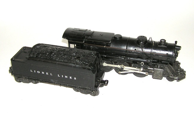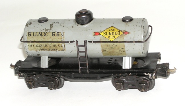 Lionel 1940 Freight SET w/ 204 Engine & 654 655 RS 657This is an original Set of Lionel Trains made in 1940. This set includes a No. 204 diecast 2-4-2 Steam Engine, with its No. 02689WX 8-wheel Tender. It also includes the following blackened journal freights - the No. 655 Rubber Stamped Box Car, the No. 654 Gray Sunoco Tank Car and the No. 657 Tuscan Roofed Caboose. Condition notes: The 204 Engine looks very nice - no breaks or cracks. It was put on a test track and ran well in forward and reverse. However, I did notice that the e-unit was fussy sometimes and needed to be turned on and off to change from forward to reverse. It did run nicely however. Nice original paint. The Tender also is in very nice overall condition. A couple of paint scrapes, and the coupler is missing its pin. It whistled well! The No. 654 Sunoco Tank Car is in good overall condition. Decals show wear. One coupler pin has been soldered in. The No. 655 Box Car looks very good. Hard to find Rubber Stamped version. All brake wheels present. The tuscan roof Caboose is in good shape. Some scratches as seen in the pictures. Its coupler pin is also soldered. A nice set for your collections. Please check out ALL the pictures before bidding. Don't miss! Buyer pays shipping (Insurance is included in the shipping and handling fees for items over $300). Please check out my other items currently listed, and save on shipping. NO RESERVE. Price: $109 SORRY! SOLD!