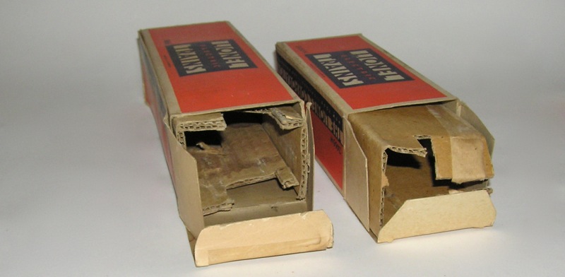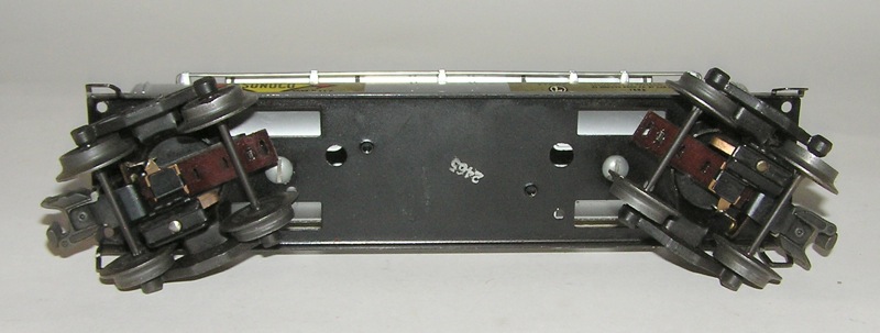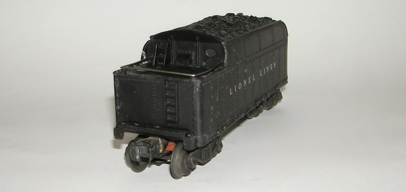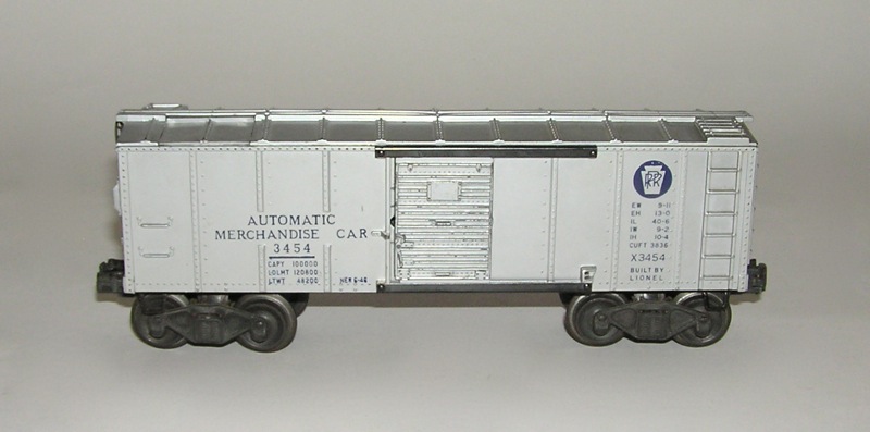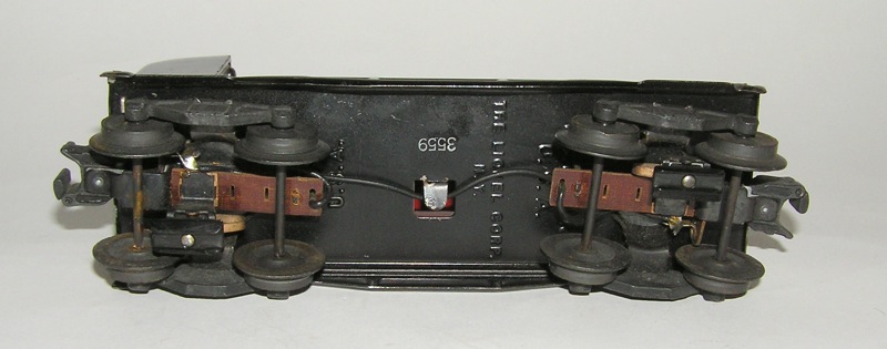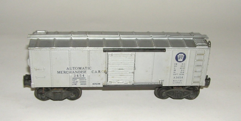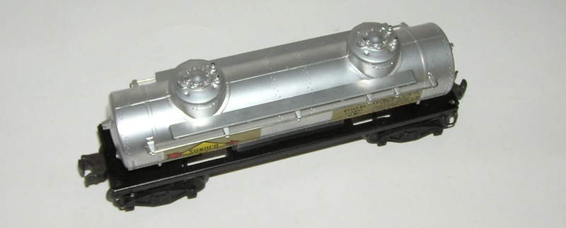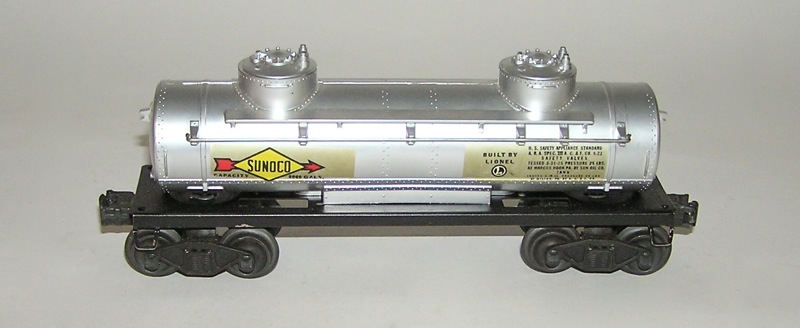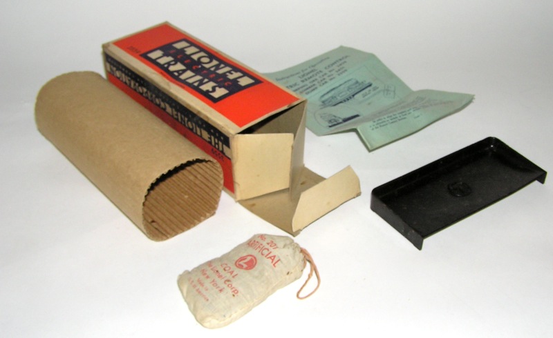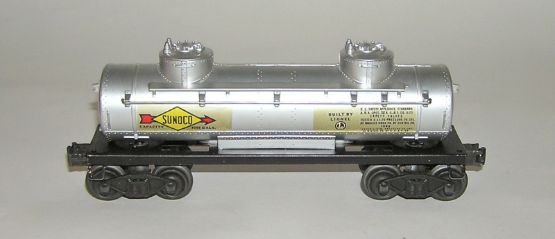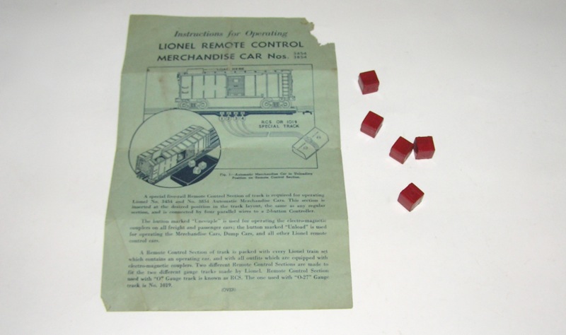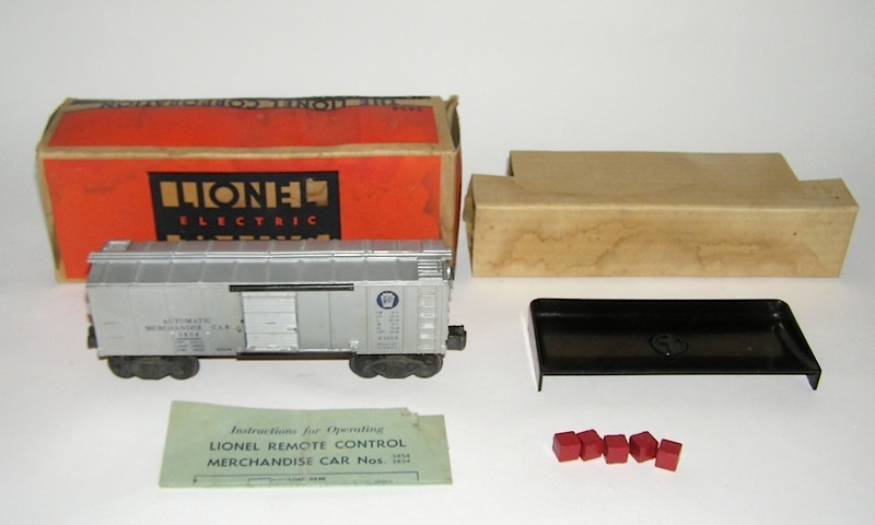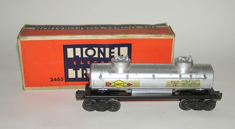 Lionel Early Postwar Freight Set # 1409W 1666 2466WX w/3454 Flying Shoe CouplerHere is a neat set of early postwar Lionel Trains - from 1946. This is Freight Set No. 1409W. It includes the 2-6-2 No. 1666 steam locomotive with its matching No. 2466WX tender. These are pulling a No. 2465 silver Sunoco two dome tank car, a No. 3454 operating merchandise car, the No. 3559 dump car with rainbow 160 bin and a No. 2472 caboose The set includes all the individual boxes, the No. 1019 track controller set, 1946 Instruction booklet, and the Set Box. All that is pictured below. What a great looking set. And in nice original condition. This is the set where the Engine has the blackened handrail, tender with "flying shoe" couplers and the Freight Cars that also have "flying shoe" type couplers. The wheels are thick axle with deep dish wheels. The engine and tender are in nice condition. The Engine is clean, and when put on a track it hums, but did not run. Wheels turn freely. A good cleaning is necessary. The Tender has some age marks on the plastic shell, but trucks and couplers are intact and in very good condition. When tested the whistle worked fine. The boxes look nice and both have their original inserts. But like all the boxes in this set, they have some water stain marks. The 2465 Tank car is beautiful. Hardly any wear. Nice crossed out box. The 3454 Merchandising car is also very nice. Box shows wear and staining, and is missing one interior flap. Does have its insert, instruction sheet, rainbow bin, and original crates. Also a nice 3559 Dump Car. Comes with its original liner, rainbow bin, bag of coal and instruction sheet. The Set Box has some wear and staining as pictured with a nice complete label. Great looking set not to be missed. Enjoy all the pictures. Thanks. Price: $429 SORRY! SOLD!
